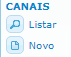 4. Clique em Listar para trazer a Listagem de Canais cadastrados no Manage ou em Novo para adicionar novo canal.