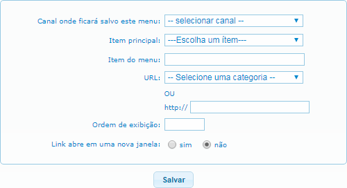 12.a. Canal onde ficará salvo: Selecione o canal de menu que deseja para cadastrar o novo sub item.